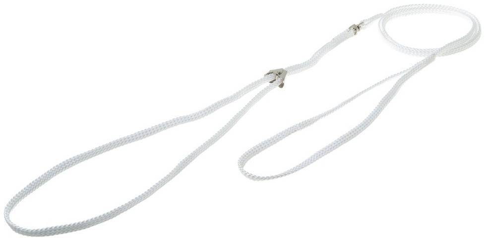 Поводок ринговку нередко называют ещё и удавкой. Почему? Да потому что конструкция удавки такова, что при натяжении, скользящая петля сдавливает шею животного и не позволяет натягивать поводок.