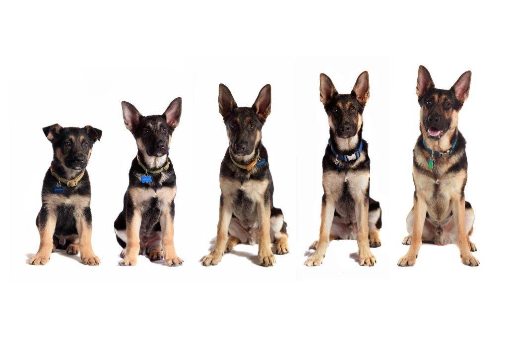Всего насчитывается 5 этапов развития немецкой овчарки: