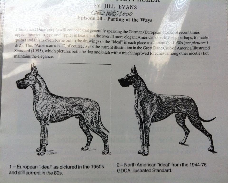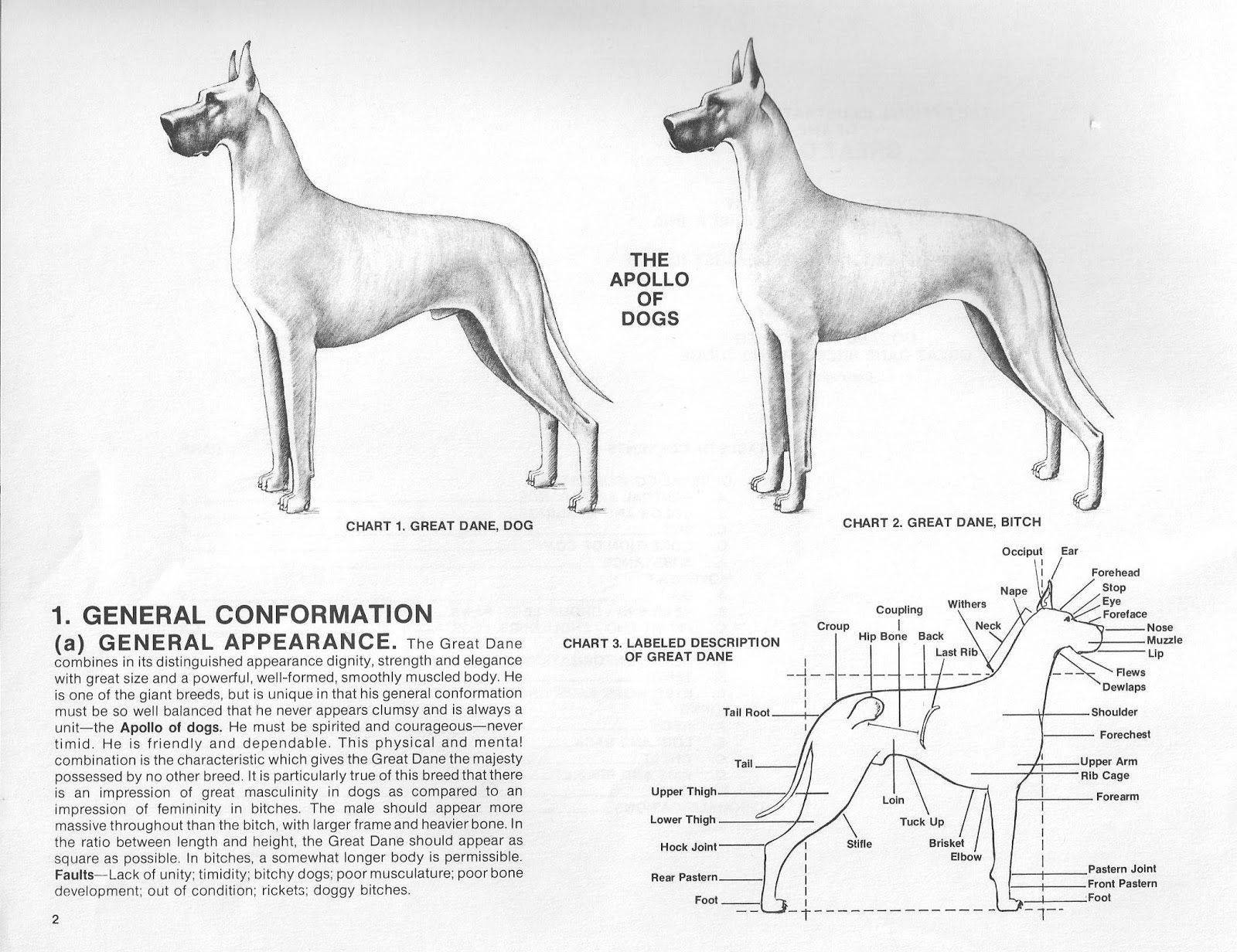 Благодаря немецкой педантичности и основательности, единые стандарты породы были прописаны с великой тщательностью. Велись архивы обо всех вязках, проектах и планах. Экстерьер постоянно дорабатывался, стандарт корректировался. Даже во времена больших войн, когда другие породы оказывались на грани вымирания, Немецкий дог сохранял свое поголовье и берегся немцами как национальное достояние.