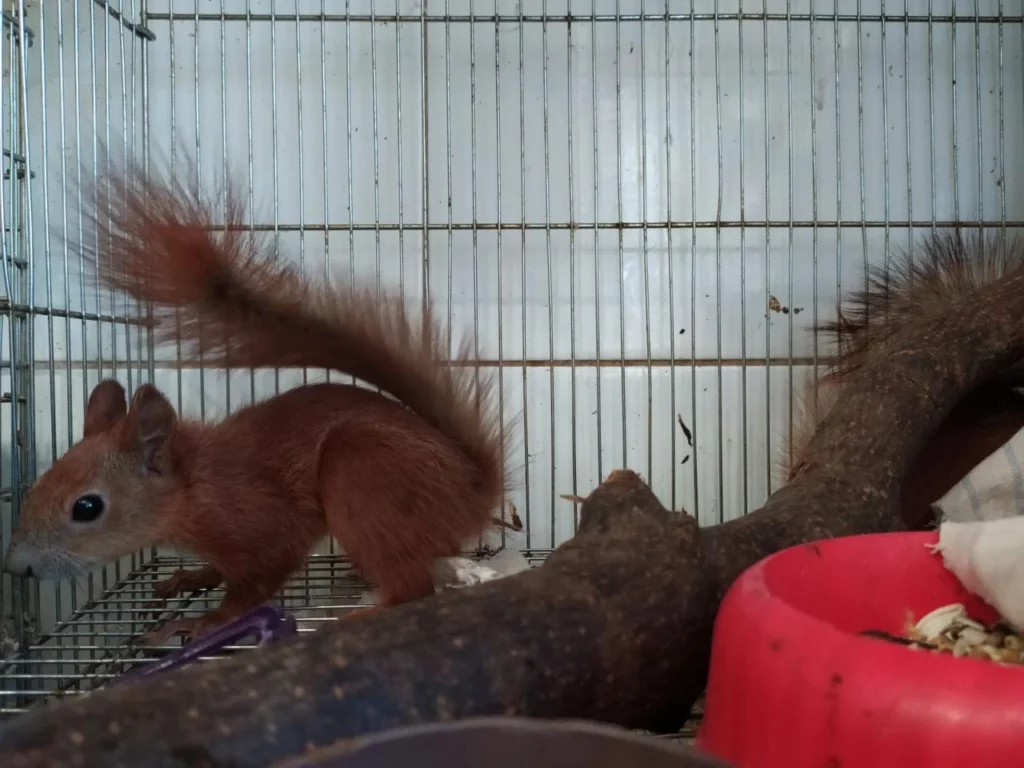 - Клетка размером от 1 м3. При этом, питомцу потребуются ежедневные «прогулки» вне клетки. Оставлять животное без присмотра нельзя. Из-за бесконтрольного перемещения по комнате белка не просто устроит беспорядок, но и подвергает себя опасности.