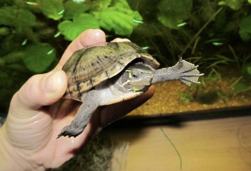 Знаете ли вы?Черепахи этого вида проводят много времени на дне. В естественной среде обитания это часто приводит к тому, что на их панцире вырастает целый «лес» из налета, ила, водорослей. В домашних условиях такое практически никогда не происходит из-за регулярной фильтрации воды и отсутствия ила. Так что при наличии некоторого налета на домашнем любимце, не стоит проводить гигиенических процедур — для такой черепахи это естественное дело.