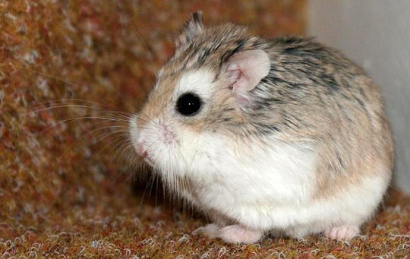 Самый известный карликовый питомец. Отличается серым окрасом, на спине имеется тёмная полоска, а живот покрыт белой шерстью