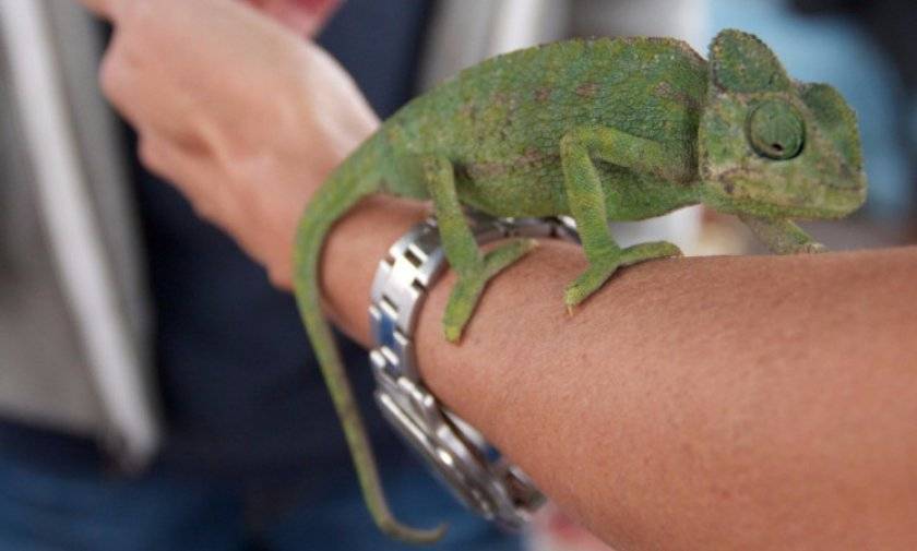 Специалисты рекомендуют начинать с попытки покормить рептилию с рук, но при этом рука долгое время должна играть роль «ветки», то есть оставаться максимально неподвижной, иначе животное попросту испугается. В конце концов, если у вашего питомца достаточно покладистый характер, а у вас — олимпийское терпение, он будет взбираться к вам на руку как по команде.