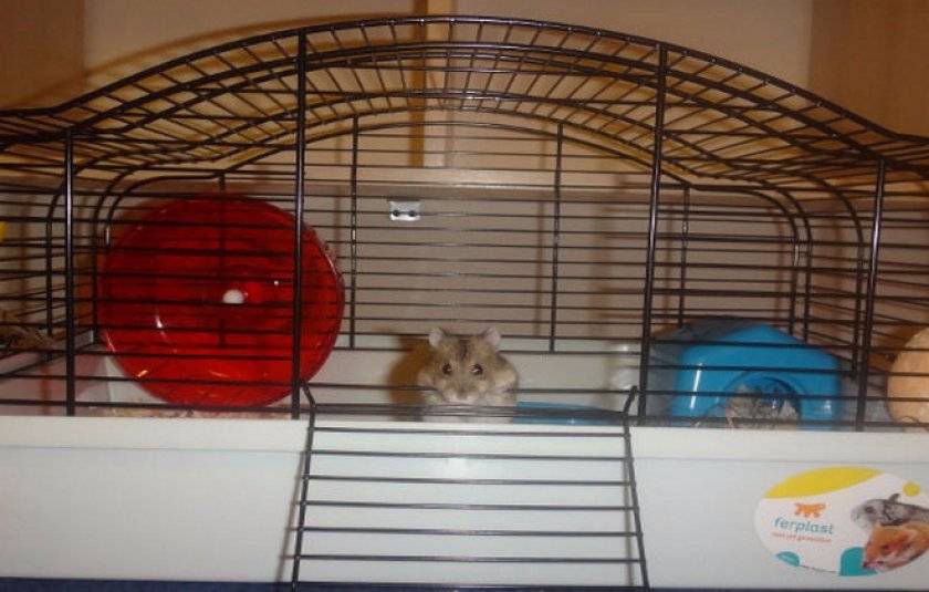 Клетки с решеткой на полу для хомяков не подходят, т. к. они должны рыть норы в подстилке. Рекомендуемый размер жилища — не менее 30×50 см для одного зверька.