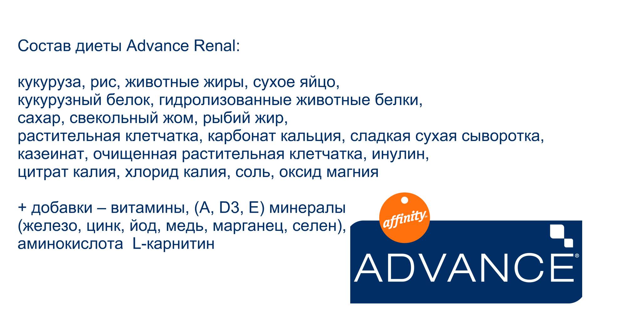 Корм Advance выпускает испанская компания Affinity. Этот бренд она приобрела в 2002 году (ранее он принадлежал компании MARS). Её заводы, ранее принадлежавшие компании Purina, расположены в Испании и Франции.