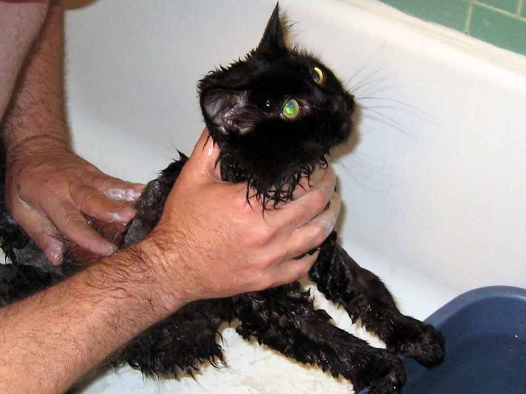 Паразиты, которые будут бежать на голову вступят в контакт инсектицидом и спрыгнут в воду, после чего, погибнут. После процедуры шерсть кошки необходимо тщательно промыть. Ожидаемый побочный эффект – потеря блеска, ломкость и сухость шерсти.