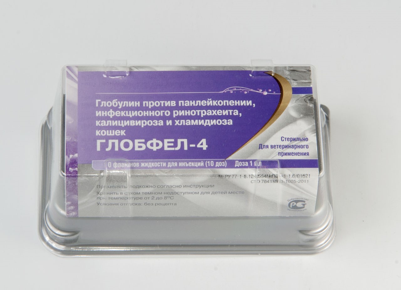 - Глобкан -5, содержащий антитела против коронавируса собак, сходного по антигенным свойствам с кошачьим.