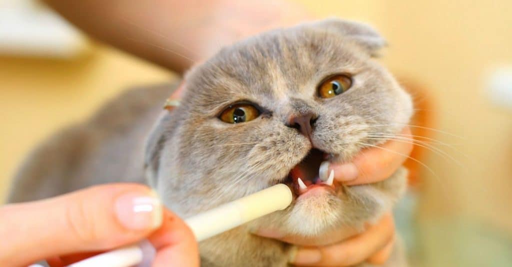 Удобнее будет чуть развести препарат водой, чтобы он стал полужидким. Залейте смесь в шприц без иглы и влейте ее котенку в рот. Чтобы он проглотил лекарство, погладьте его по шейки. При таком движении, сглатывание происходит рефлекторно. Таким же образом кормят ослабленных животных, не способных самостоятельно есть.