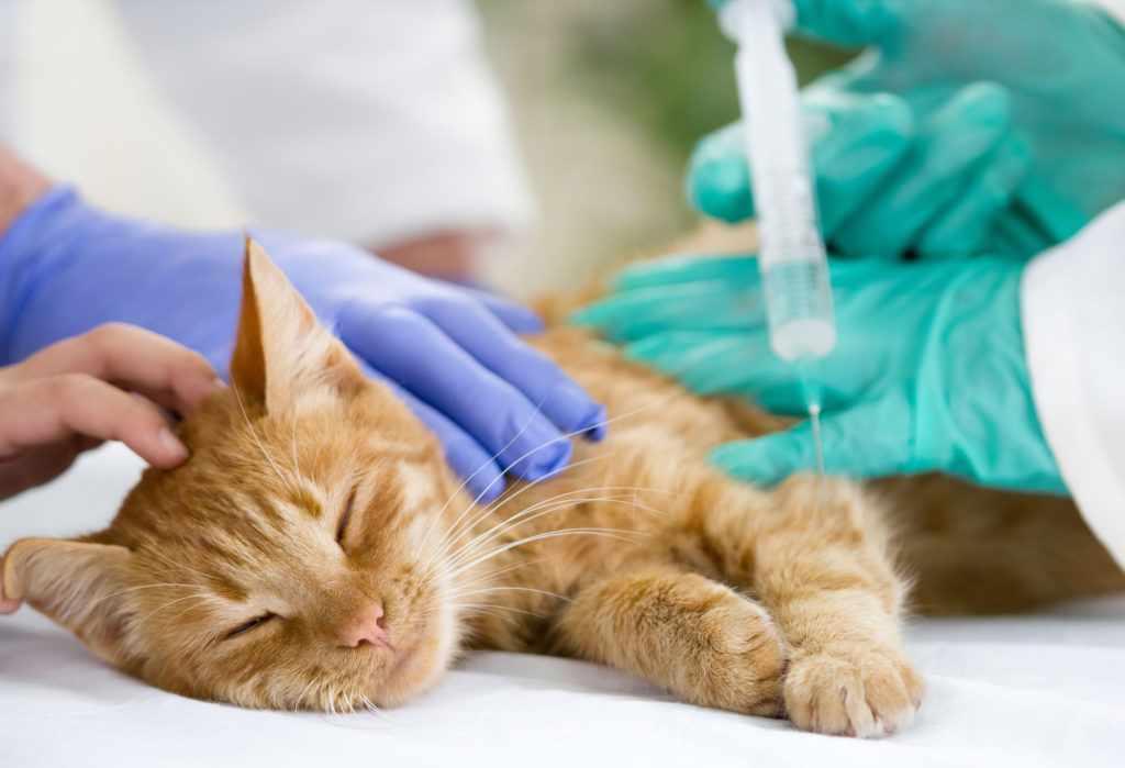 Подкожные уколы Фоспренила для кошек делают в холку, вводя иглу в приподнятую пальцами кожу.
