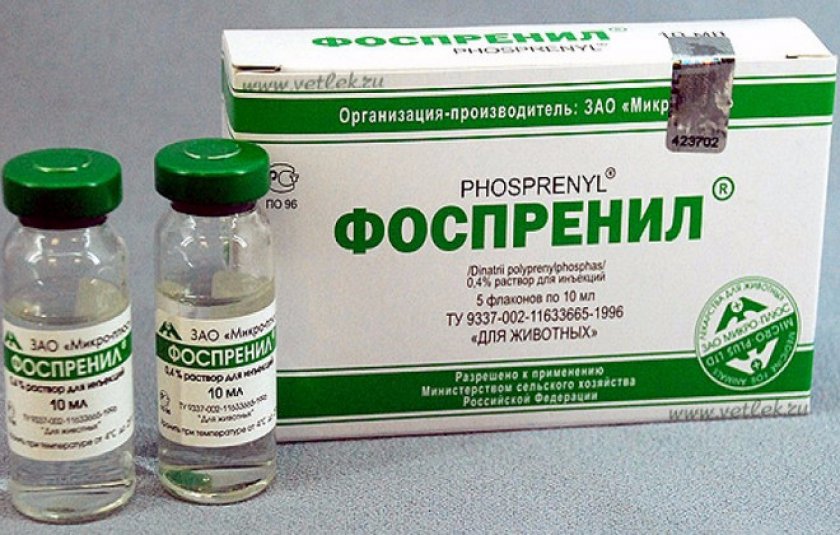- Для лечения собак Фоспренилом при нормальном течении заболевания производитель рекомендует соблюдать разовую дозу введения инъекций в 0,1 мл на 1 кг веса.
