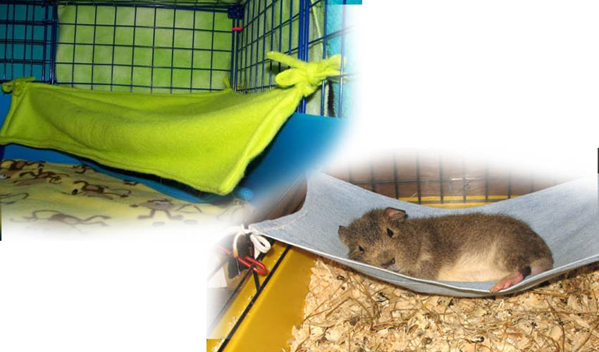 Выбирая размер гамака и закрепляя его в клетке, стоит правильно натянуть гамак, так как при большом провисании позвоночник грызуна повреждается.