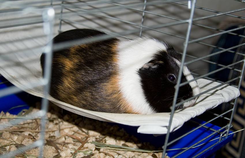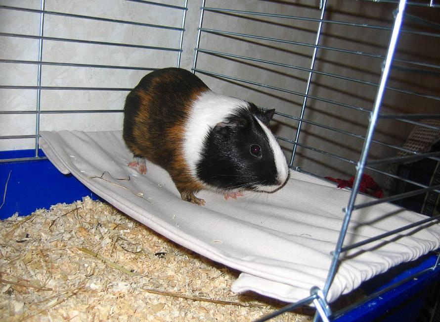 Высота установки мягкой полки — очень важный фактор. Свинке должно быть удобно забраться на нее. И в случае падения животное не должно получить травм. Поэтому рекомендуется подвешивать устройство на высоте от 6 до 15 см от дна клетки.