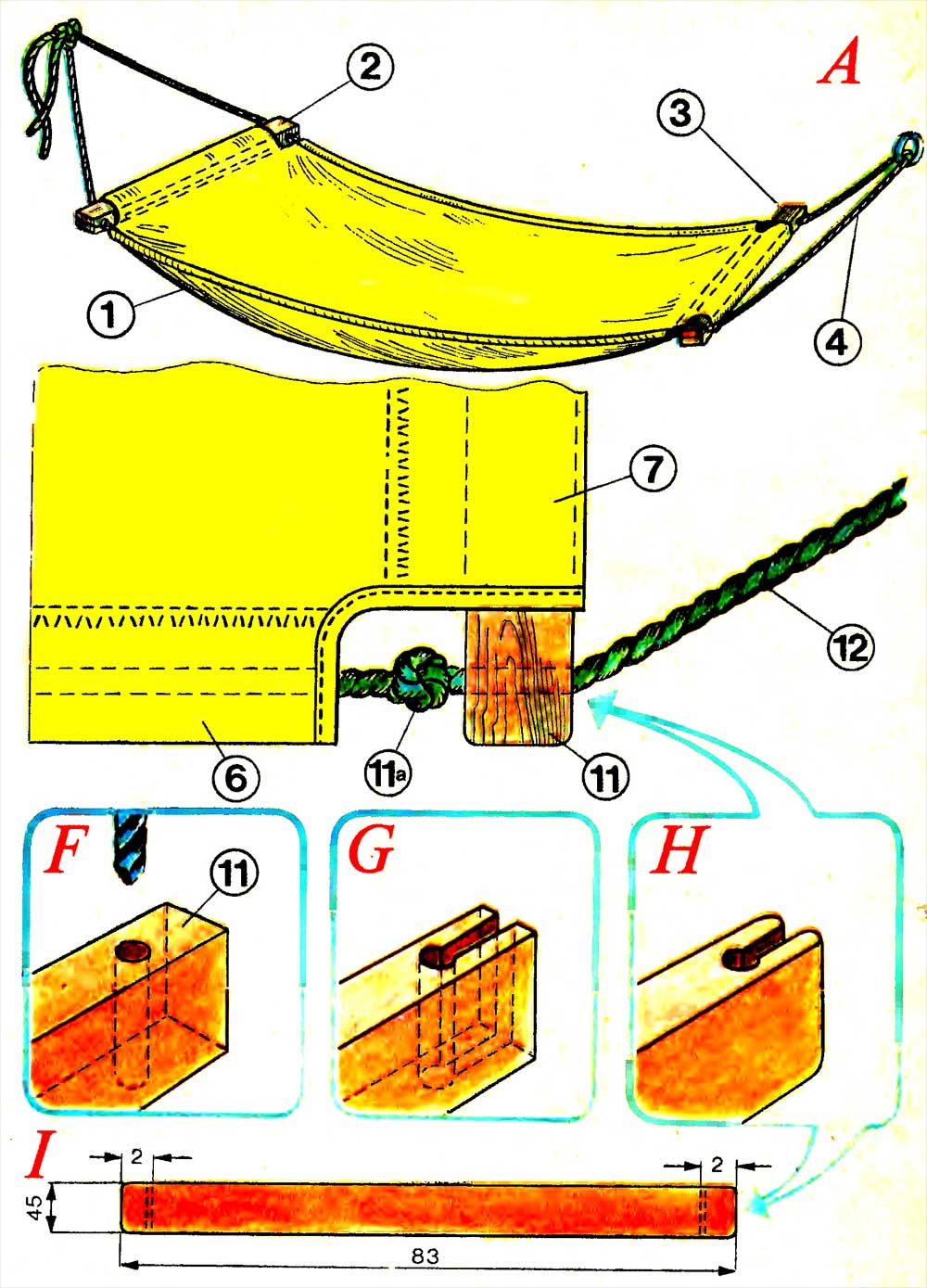 - Аналогичное проделать со второй парой (45х20 см), чтобы в итоге вышло 2 небольших гамака.