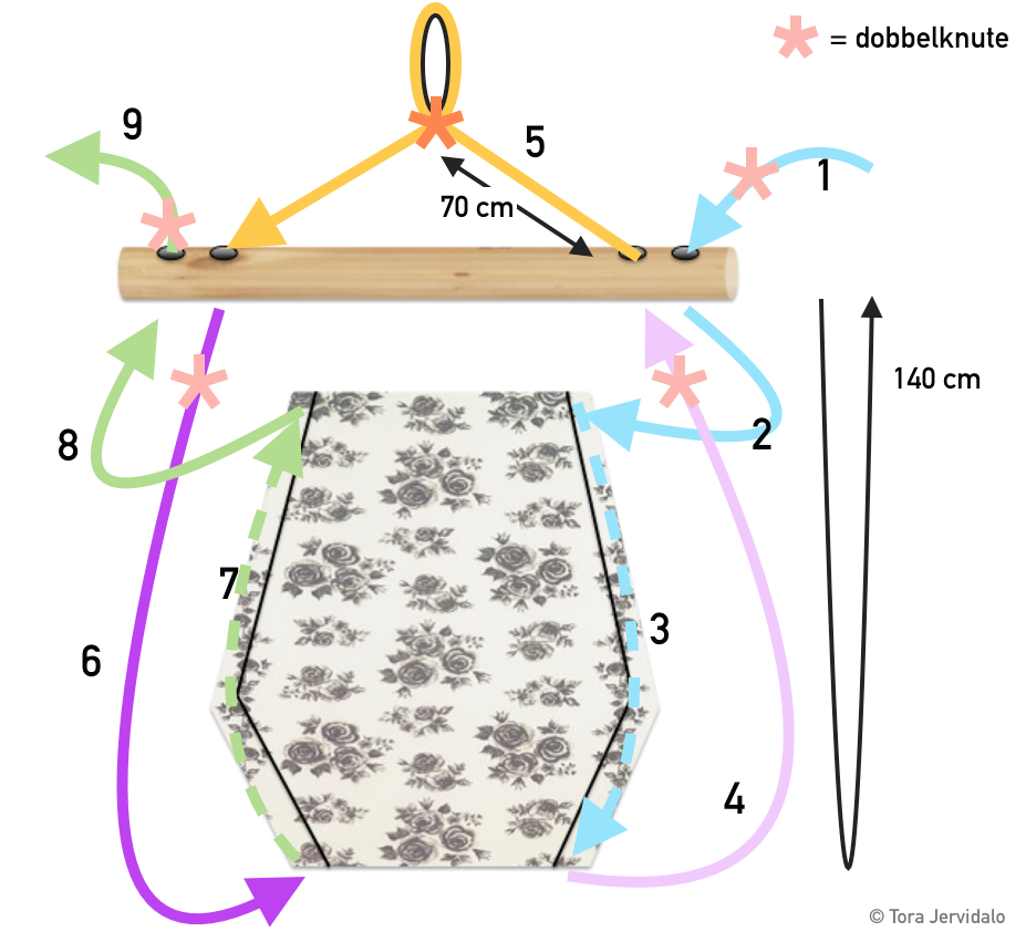 - Далее нужно прикрепить карабины – достаточно будет приделать петельки (2 в случае с гамаком-трубой и 4 для классического), чтобы продеть в них крепления.