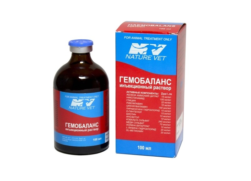 Препарат “Гемобаланс” широко распространён в ветеринарии. Представляет собой сочетание витаминов и аминокислот. Применяется для лечения и предупреждения заболеваний кошек.
