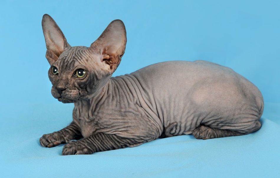 - Петерблод. В 1996 году ученые вывели эту породу лысых котов путем скрещивания Сфинкса и Ориентальной кошки. Отличительная особенность этого животного – преданность и любовь к своему хозяину. Эти коты сильно потеют, их нужно мыть дважды в неделю.