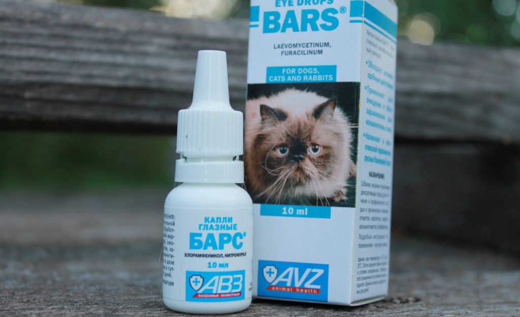 Глазные капли «Барс» – универсальный комплексный офтальмологический препарат. Кошкам назначают для промывания, гигиены глаз, а также при лечении конъюнктивитов различной этиологии, в том числе и аллергических, увеитов, кератитов, блефаритов. Выпускается в полимерных флаконах-капельницах. Содержит в составе фурацилин, левомицетин, другие вспомогательные компоненты.