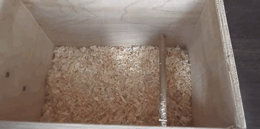Этот процесс осуществляется с помощью качественных древесных опилок или сухих цветков лекарственной ромашки. Материал просто насыпают на дно самодельной конструкции в качестве подстилки. Более того, эксперты не предъявляют никаких ограничений к использованию определённых пород деревьев для получения подстилочного материала. Следите, чтобы его было достаточно.