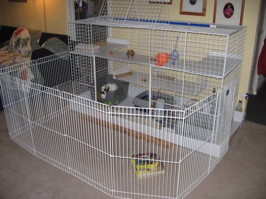 Животному необходимо купить качественную клетку, в которой он будет чувствовать себя комфортно. Её минимальный размер 50 см на 70 см. Дно её должно быть сплошным, а прутья металлическими. Внутри клетки надо установить ещё и домик, в котором любимец сможет спрятаться, если устанет от внимания и захочет уединения.