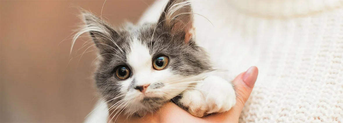Котенок должен быть не в стрессовом состоянии – он не должен вырываться из руки, кричать и т.д.