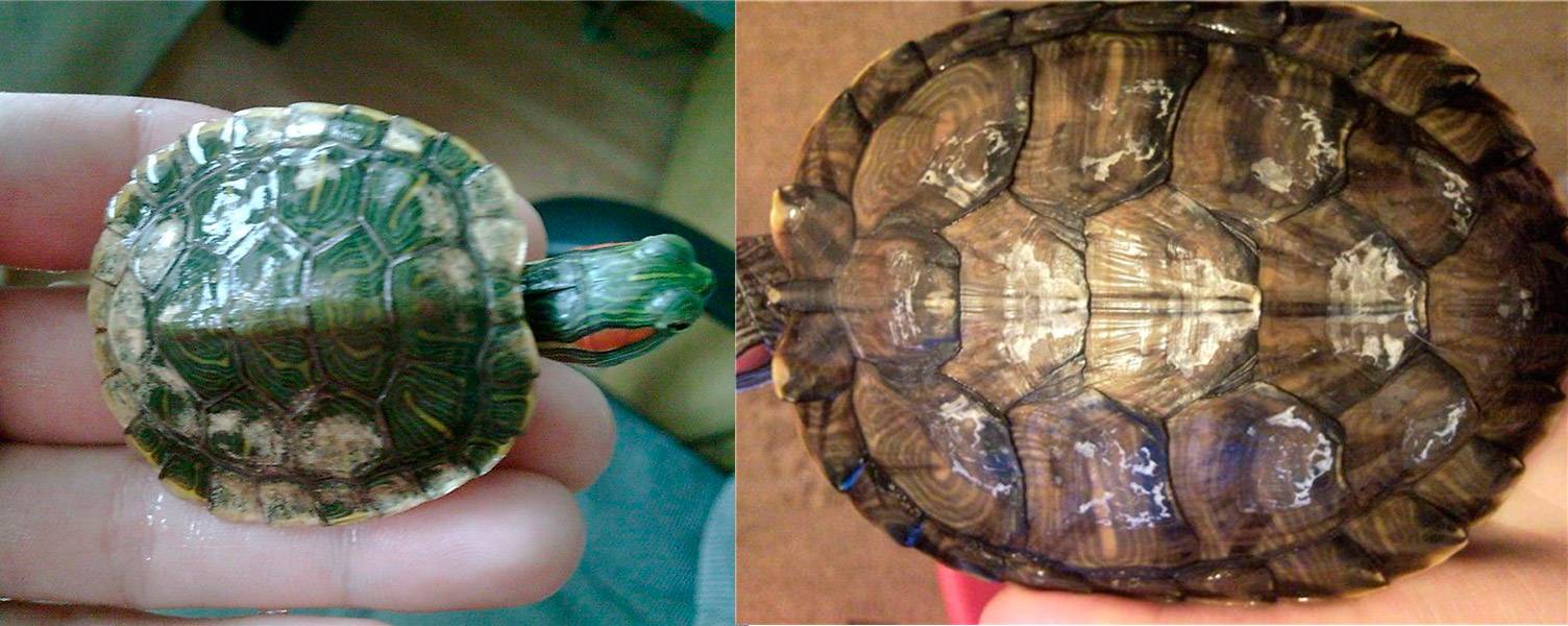 У молодых красноухих черепах процесс линьки наблюдается достаточно часто. За один месяц верхний слой кожи и панциря может отслаиваться несколько раз. Это хороший признак. Значит, питомец здоров и быстро растет. Протяженность процесса линьки часто составляет несколько лет – пока черепаха не достигнет полного взросления.