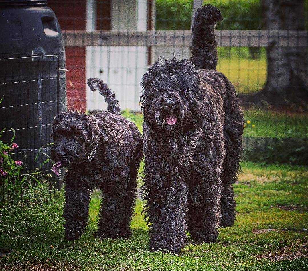 Корпус мощный, цельный, очертания грубоватые. Средний вес кобелей 50-60 кг, а сук 45-50 кг. Окрас, как видно на фото, черный, иногда с примесью седины, если таковой цвет составляет меньше трети всего туловища. Шерсть двухслойная, густая, волнистая, 5-10 см в длину.