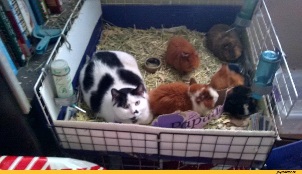 Если все же так случилось, и свинка появилась в доме, где давно обосновалась кошка, держите клетку со свинкой в комнате, куда кошке вход воспрещен. Сказанное относится к взрослой кошке.