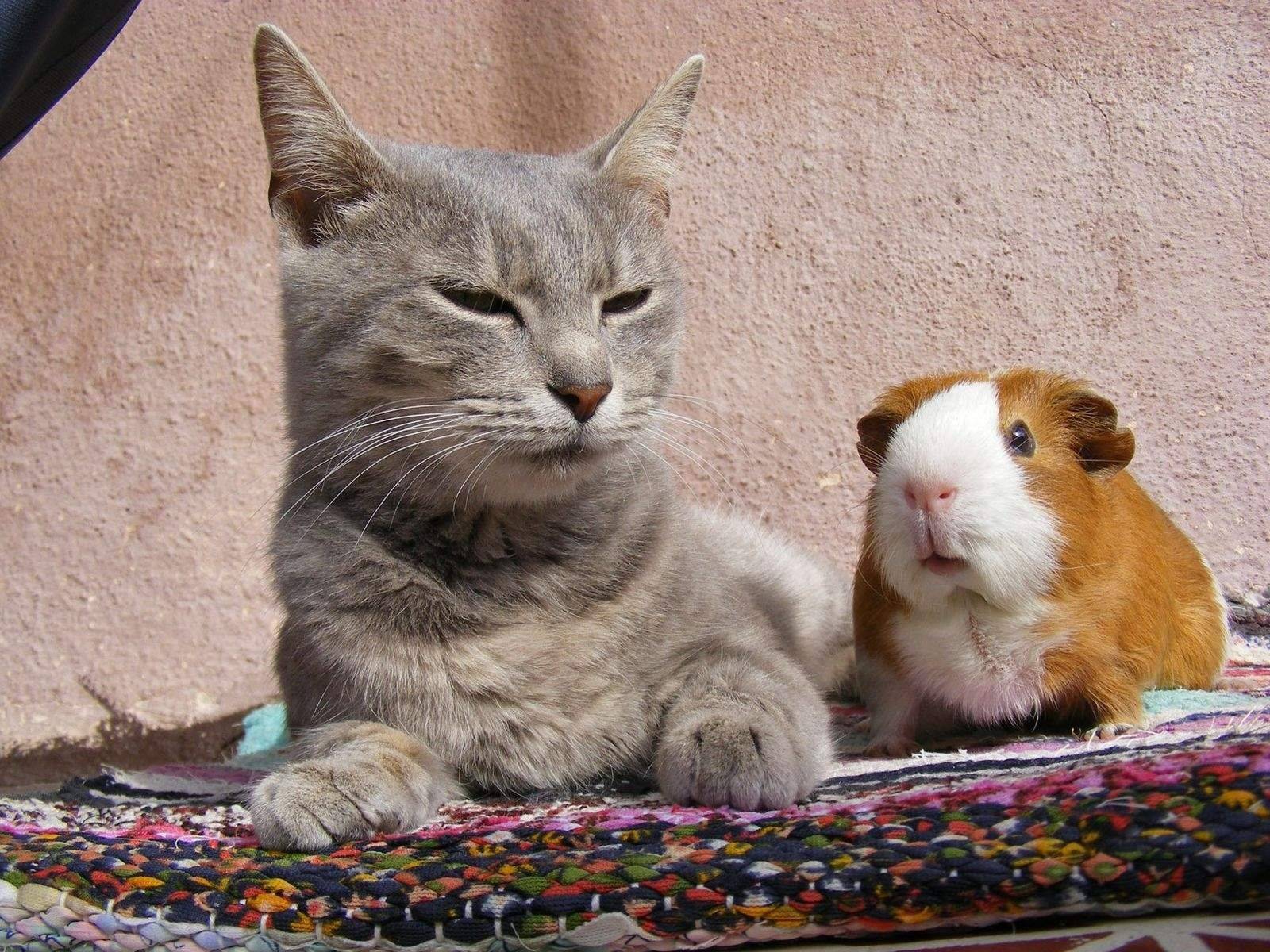 Однако довольно легко подружить хищника и грызуна, если одновременно завести и котенка, и свинку – они с детства привыкнут друг к другу, и кошке не придет в голову рассматривать свинку в качестве обеда.