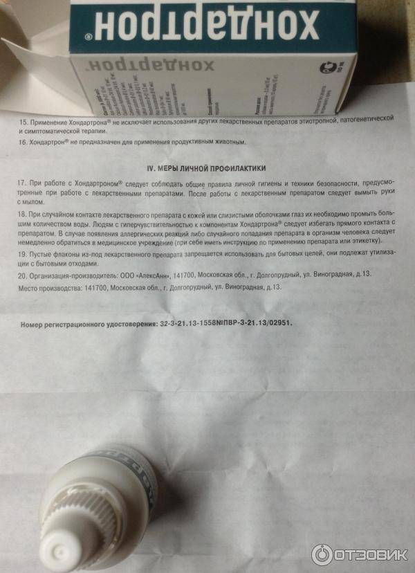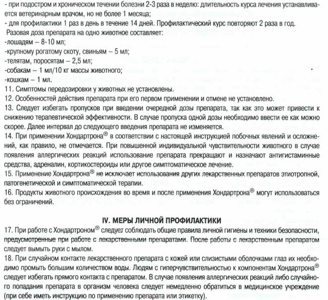 При лечении рахита у щенков, а также растяжений и слабости связок у старых животных, хондартрон можно вводить чаще. Неплохо он себя зарекомендовал и при профилактике этих болезней, но в этом случае дают капли. В день на собаку тратится по 7-10 капель, длительность курса – не менее двух-трех месяцев.
