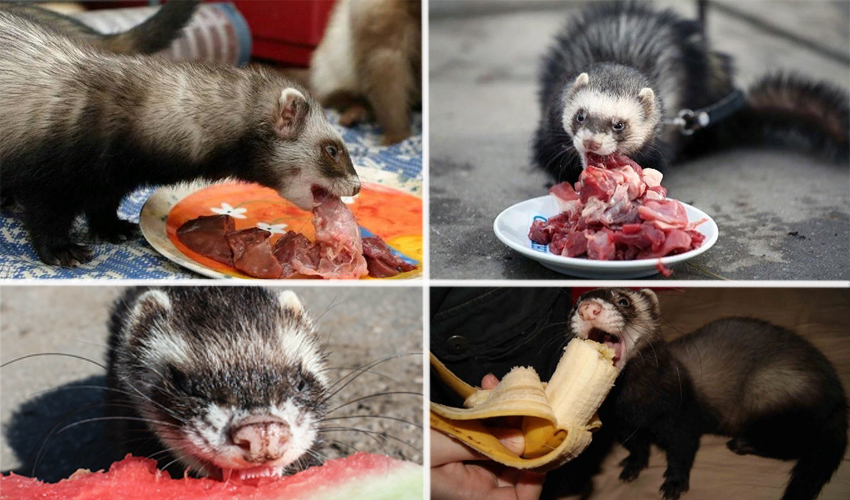 Основа рациона фретки – белок (40 %), жиры (25 %), растительная клетчатка (2 %). Хорек должен получать достаточно кальция, фосфора, магния, витаминов.