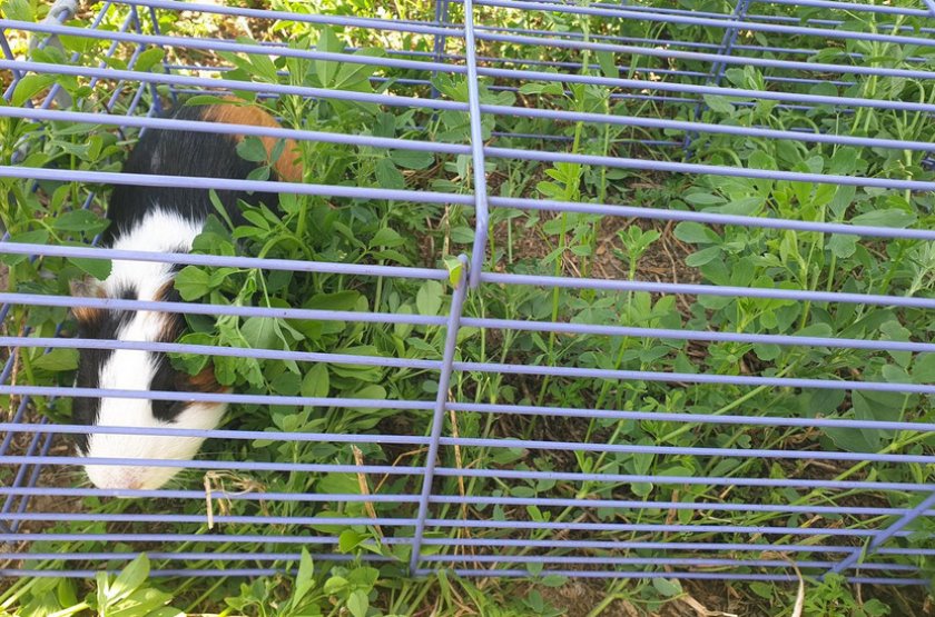 Материалы для ограждения могут быть выбраны на ваше усмотрение (может быть даже простой картон, но питомцы могут его сгрызть), но самое важное-помнить о том, что они прежде всего должны быть безопасны, поэтому избегайте чего-то острого и колючего. Морские свинки очень любят сено, поэтому оно может стать основным расходным материалом. Им можно выстелить дно вольера