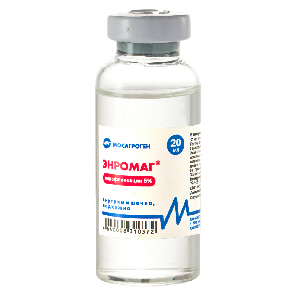 1. Энромаг (Enromag) – лекарственное средство в форме раствора для инъекций, предназначенное для лечения животных при болезнях бактериальной этиологии.