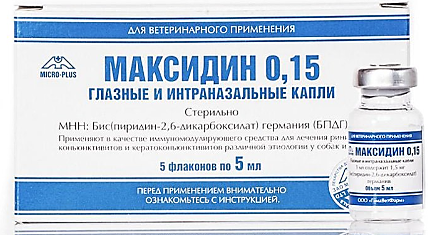 Максидин 0,15 иногда называют каплями для глаз, так как именно с этой целью его, как правило, и выписывают в ветеринарных клиниках (кстати, как кошкам, так и собакам). Иммуномодулирующий раствор 0,15% предназначен для закапывания в глаза/носовую полость.