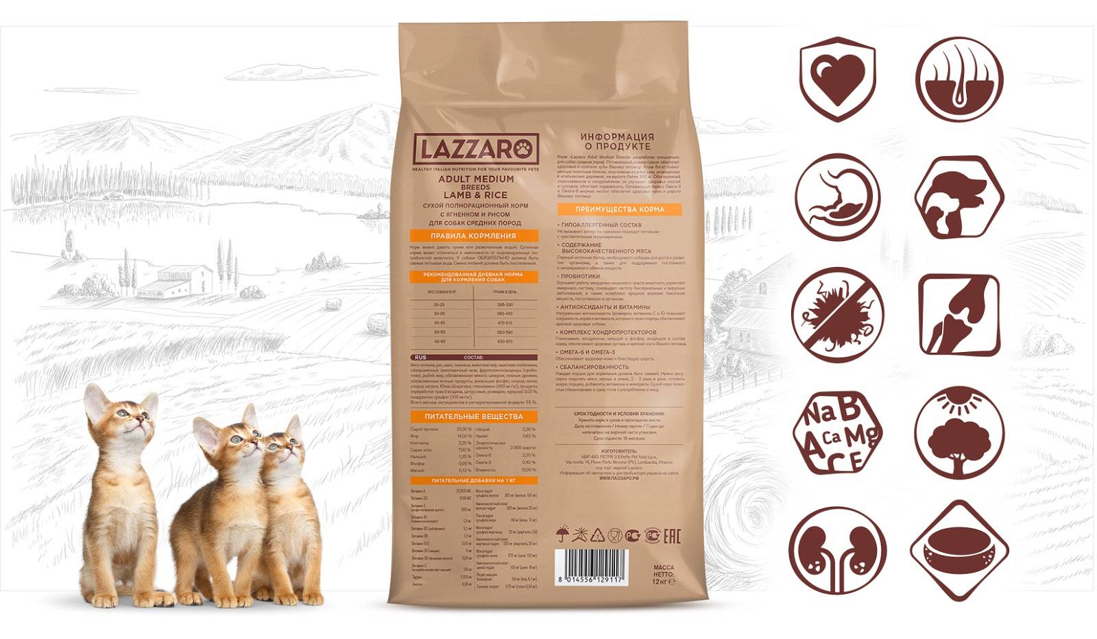 На этикетке корма ингредиенты указаны в порядке убывания процентного соотношения