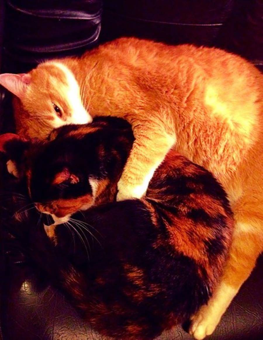 В итоге из заморыша выросла пестрая красавица-кошка, названная Пышей. Подходящее имя, не правда ли? В отличие от Рыжика, Пыша предпочитает сухой корм, да и нравом обладает куда более независимым. Её уже так запросто не потискаешь. Видимо, сказывается то, что котик стерилизован, а кошечка – нет. Но любви эти детали — не помеха. Кот, по рассказам, очень привязан к своей молодой подруге и беспокоится, когда ее нет рядом.