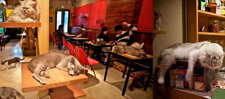Любители кошек, по каким-либо причинам не имеющие возможности держать их у себя дома, могут прийти в кошачье кафе и полюбоваться милыми созданиями, поиграть с ними, покормить и пофотографироваться. Самое-самое первое кафе с котами было открыто в городе Тайбей, столице региона Тайвань в 1998 году. Кошачье кафе стало популярным, особенно у туристов из Японии. А в 2004 году в японском городе Осака было открыто подобное заведение – кафе с кошками. Излюбленное место для кошатников стало пользоваться такой популярностью, что кошачьи кафе стали открываться повсеместно, на сегодняшний день только в Токио их несколько десятков. Кошачьи кафе бывают очень разноплановыми: с кошками одного цвета; с котами или кошками, только одного пола; с кошками одной породы; с кошками, обитающими в кафе постоянно; с котиками из приютов для бездомных и при желании, можно забрать к себе на воспитание полюбившегося милашку. Атмосфера домашнего уюта в кафе с котами, возможность пообщаться с ними – это как антидепрессанты, как глоток покоя и непринуждённости в мире суеты и беготни, в мире так быстро меняющемся, что порой голова идёт кругом. И такие вот места – разномастной красоты, тихого мурчания и пушистых комочков, становятся всё более актуальными и востребованными. В 2011 году открылось первое кафе в европейском городе, в Санкт-Петербурге. За тем, через год, в австрийском городе Вене, в трёх городах Германии. Вскоре и во Франции, Прибалтике, США. Сейчас в России уже в нескольких крупных городах работают кошачьи кафе. В украинском городе Черкассы (2015 год), в молдавской столице Кишинёве (2018 год) также начали принимать гостей и любителей кошек и котов.