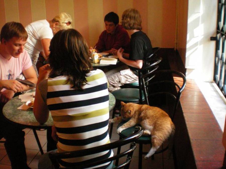 Очаровательный ресторан в Петербурге, где главенствует кот по имени Гоша. В отличие от предыдущих мест он здесь один, зато какой – серьезный сфинкс. Он следит, чтобы гостям все нравилось, а еще иногда позволяет погладить себя. Кто знает, может быть вы удостоитесь этой чести?
