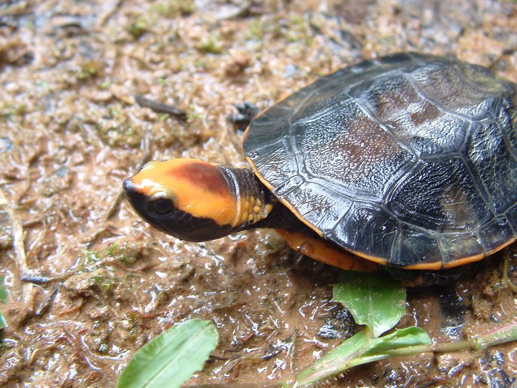 Рептилии вырастают до 12 см в длину. Имеют черный гладкий панцирь с желтыми пятнами. Такие же включения есть и на теле черепахи. Они могут быть красными или оранжевыми. Температура содержимого должна быть комнатной. Подойдет небольшой террариум, в который нужно поместить много растений. Питается в основном насекомыми. Часы активности приходятся на дневное время. Является хищником.