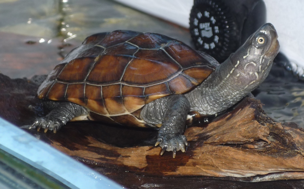 Особи маленького размера, цветом от красно-бурого до черного. На панцире имеются 3 киля. Не привередливы в еде, могут питаться овощами и фруктами. Также любят мелкую рыбу. Очень миролюбивое животное, идеальное для содержания в домашних условиях. Подойдет аквариум от 50 до 100 литров.