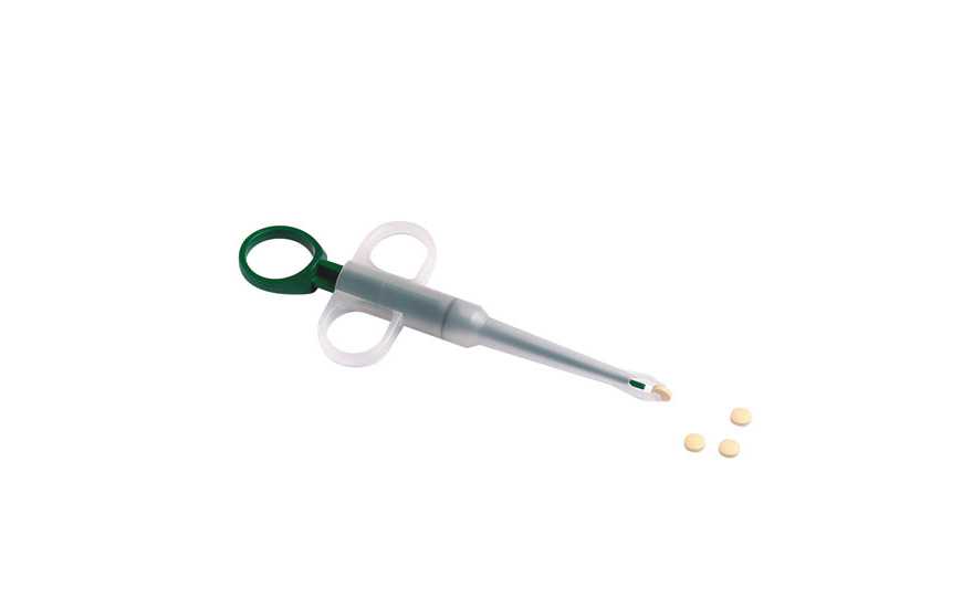 - поместите твердую таблетку на кончик таблеткодавателя;
