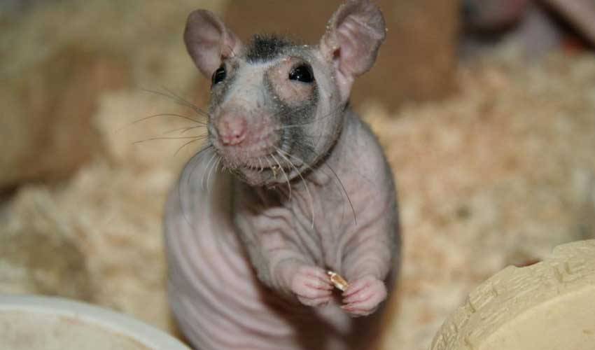 Крысы породы сфинкс – такие представители были выведены путем специальной мутации. Основным отличием является теплая и мягкая кожа. Поскольку таким зверькам необходимо согреваться, они довольно много времени проводят на руках у владельца