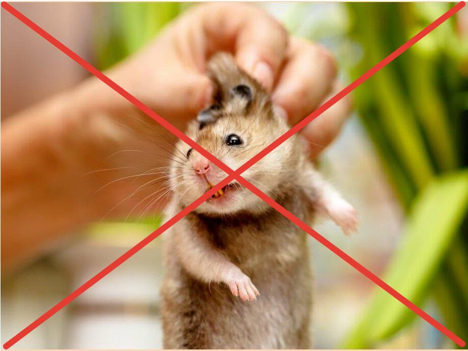 - пытаться взять хомяка на руки, когда он расположен к вам спиной и не видит, кто его берёт. Это может испугать питомца.