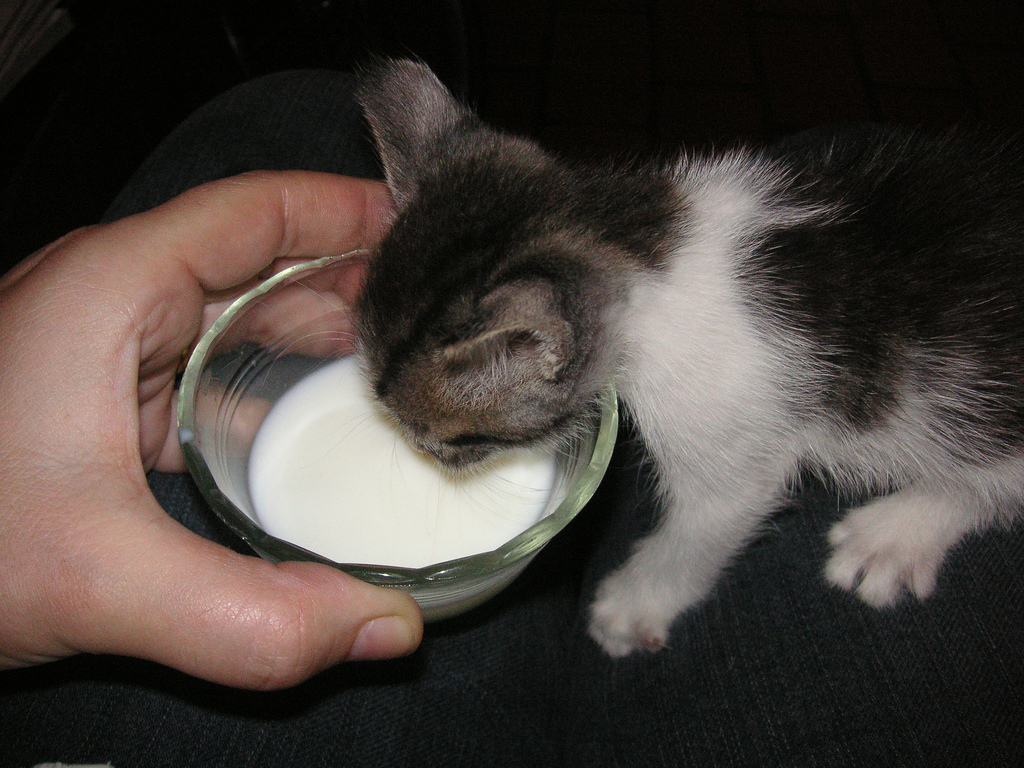 Он с интересом наблюдает за тем, как едят другие животные. Начинать прикорм следует с молочных продуктов. Налейте молоко в блюдце, обмакните в него палец и дайте облизать котёнку. Малыш поймет, что это вкусно и сам потянется к чашке.