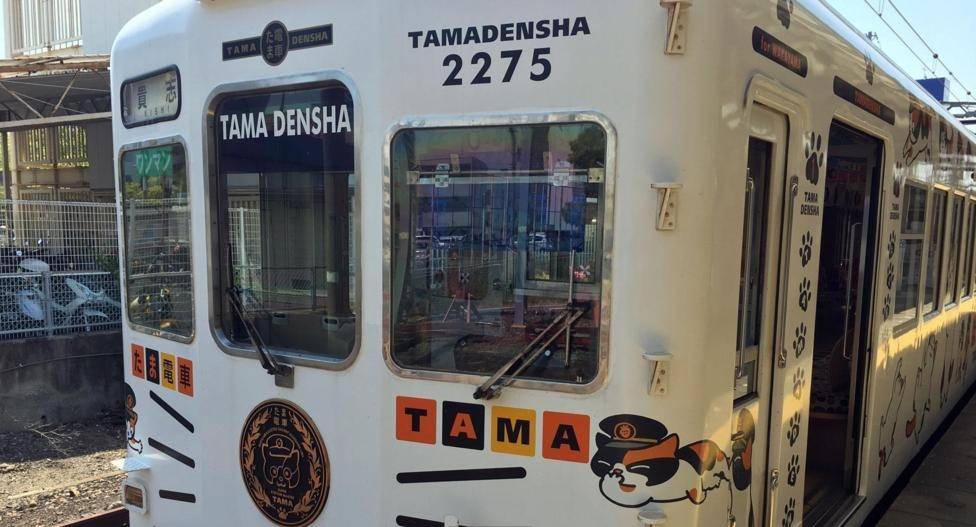 В 2009 году железная дорога наняла прославленного промышленного дизайнера Эйдзи Митуку. Специалисту поручили создать «поезд Тамы». Вагоны решили украсить мультяшными изображениями знаменитой кошки. Локомотив спереди разрисовали в виде кошачьей мордочки, а внутри всё отделали деревом и установили полки, где разместили детские книжки. Двери поезда открываются при специальном звуковом сигнале, которым служит запись мяуканья Тамы.