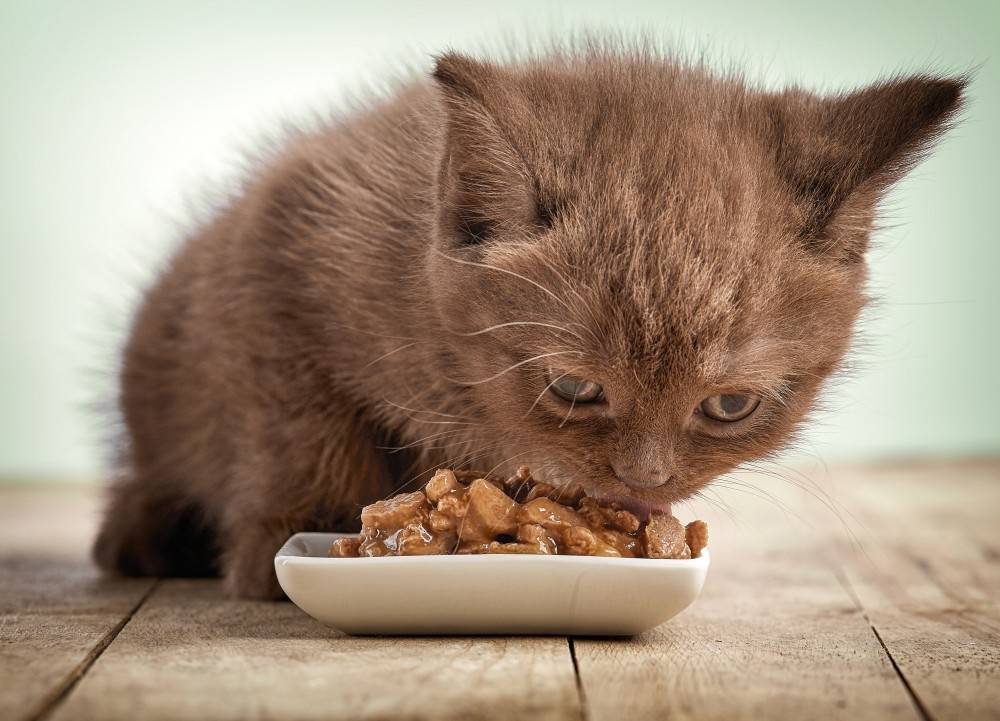 Возможны различные варианты пищи для котят: специальные корма для котят, размоченные сухие корма, мясной паштет, специальные корма для котят в виде паучей или консервов.