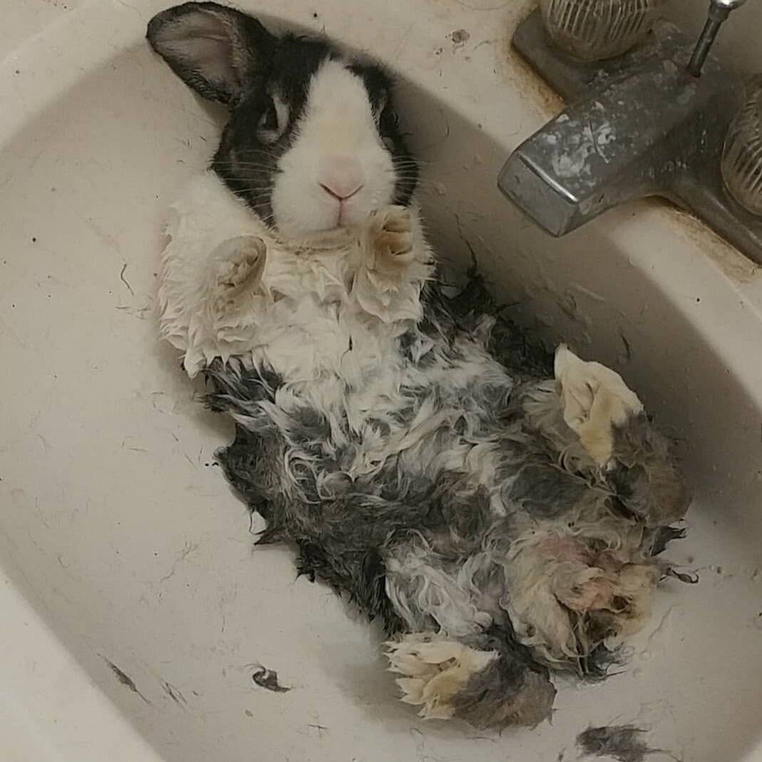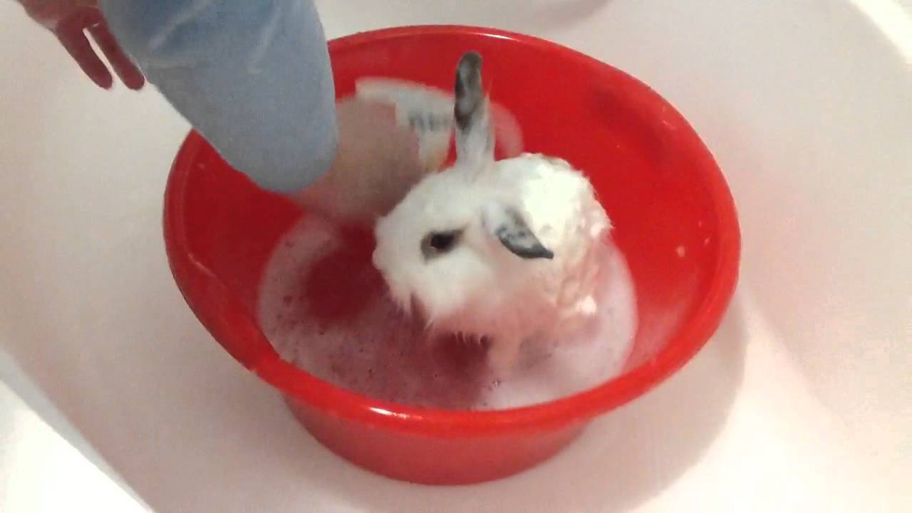 Если кролик полностью или частично вымазался, и возникла необходимость его отмыть, существует несколько вариантов купания зверька.