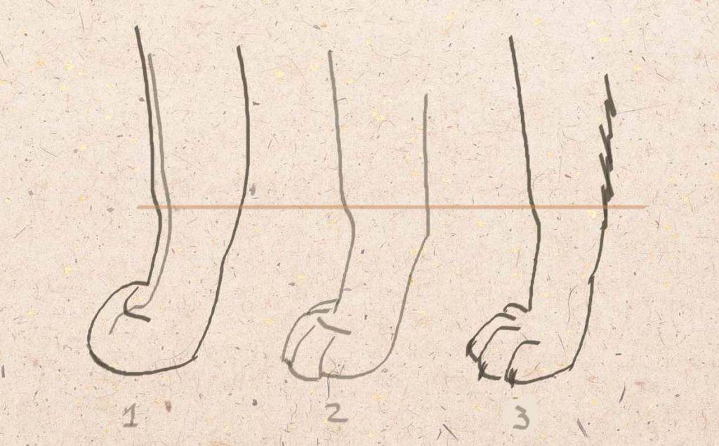 - Внизу передней ноги рисуется небольшой овал, который будет контуром лапки.