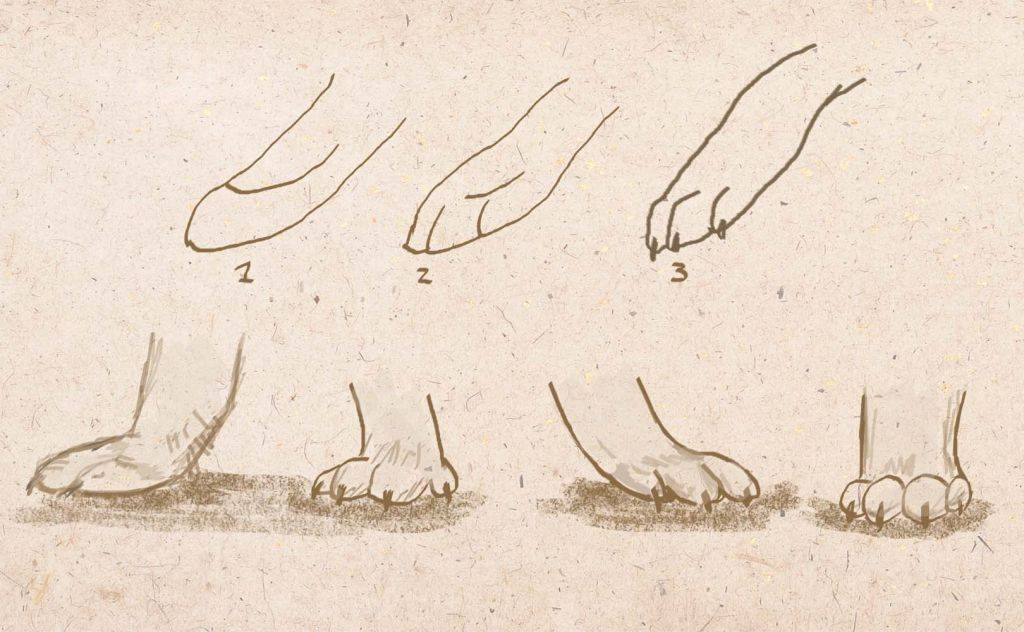 Варианты и этапы изображения лапок