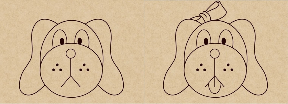 - Если у пса длинные обвисшие уши, то рисовать их нужно немножко ниже линии, намеченной по схеме.