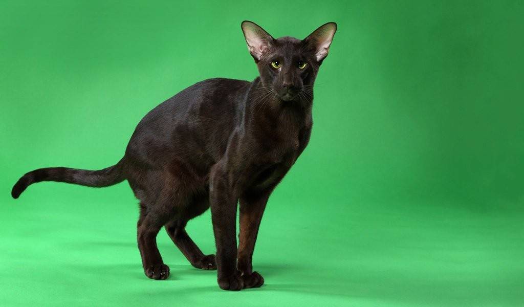 - Ориентальные кошки – были выведены американскими селекционерами в 60-х годах. Путём скрещивания балинезийской кошки и короткошёрстного ориентала заводчики смогли вывести эту удивительную кошку. Впервые элегантная красавица была представлена на соревнованиях в 1977 году как самостоятельная порода. Но официально длинноухих кошек признали в 1997 году ассоциацией GCCF. Ориентальная кошка похожа на сиамскую породу, только уши у неё гораздо больше.